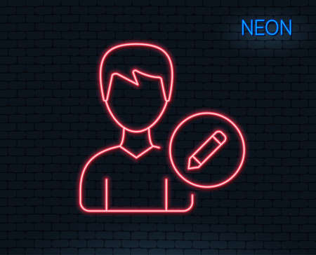 ネオンライト ユーザー行 アイコンを編集します 鉛筆記号付きのプロファイルアバター 男性人 シルエットシンボル 輝くグラフィックデザイン レンガの壁ベクトルイラスト のイラスト素材 ベクタ Image